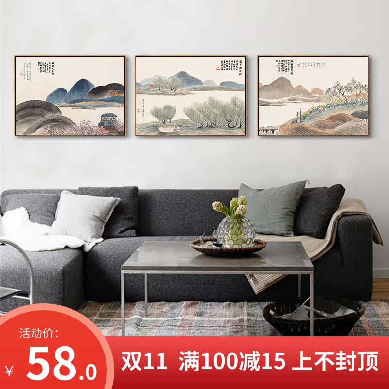 齐白石国画山水风景新中式客厅装饰画横幅酒店挂画餐厅玄关墙壁画热门设计联盟服务商