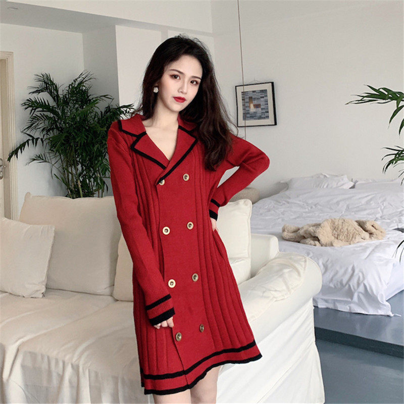 欧洲站2021春装新款拜年喜庆聚会平时可穿设计感红色内搭连衣裙女热门设计联盟服务商