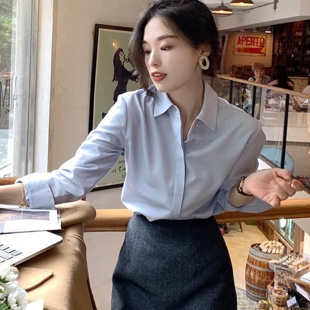 好质量2020秋装女新款洋气上衣女设计感小众长袖法式衬衣打底衬衫热门设计联盟服务商