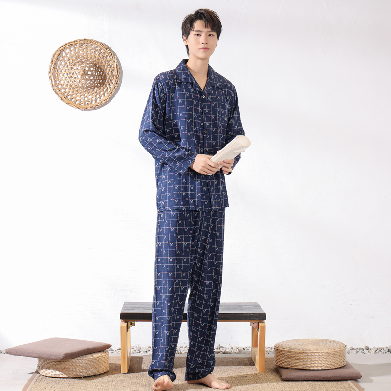中老年夏季棉绸睡衣男士长袖长裤大码翻领家居服套装绵绸春秋服饰热门设计联盟服务商